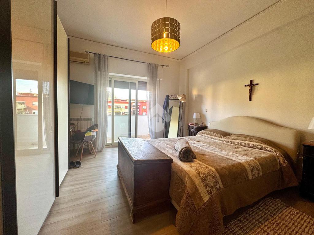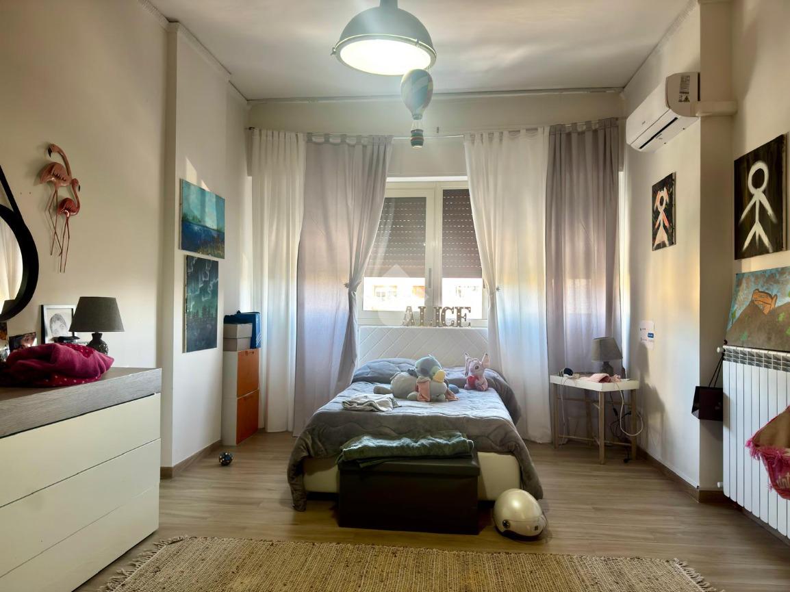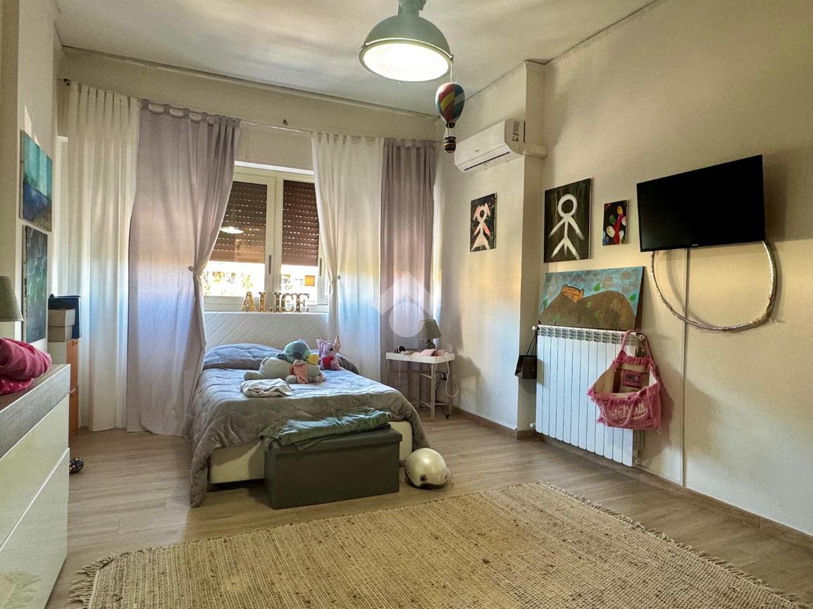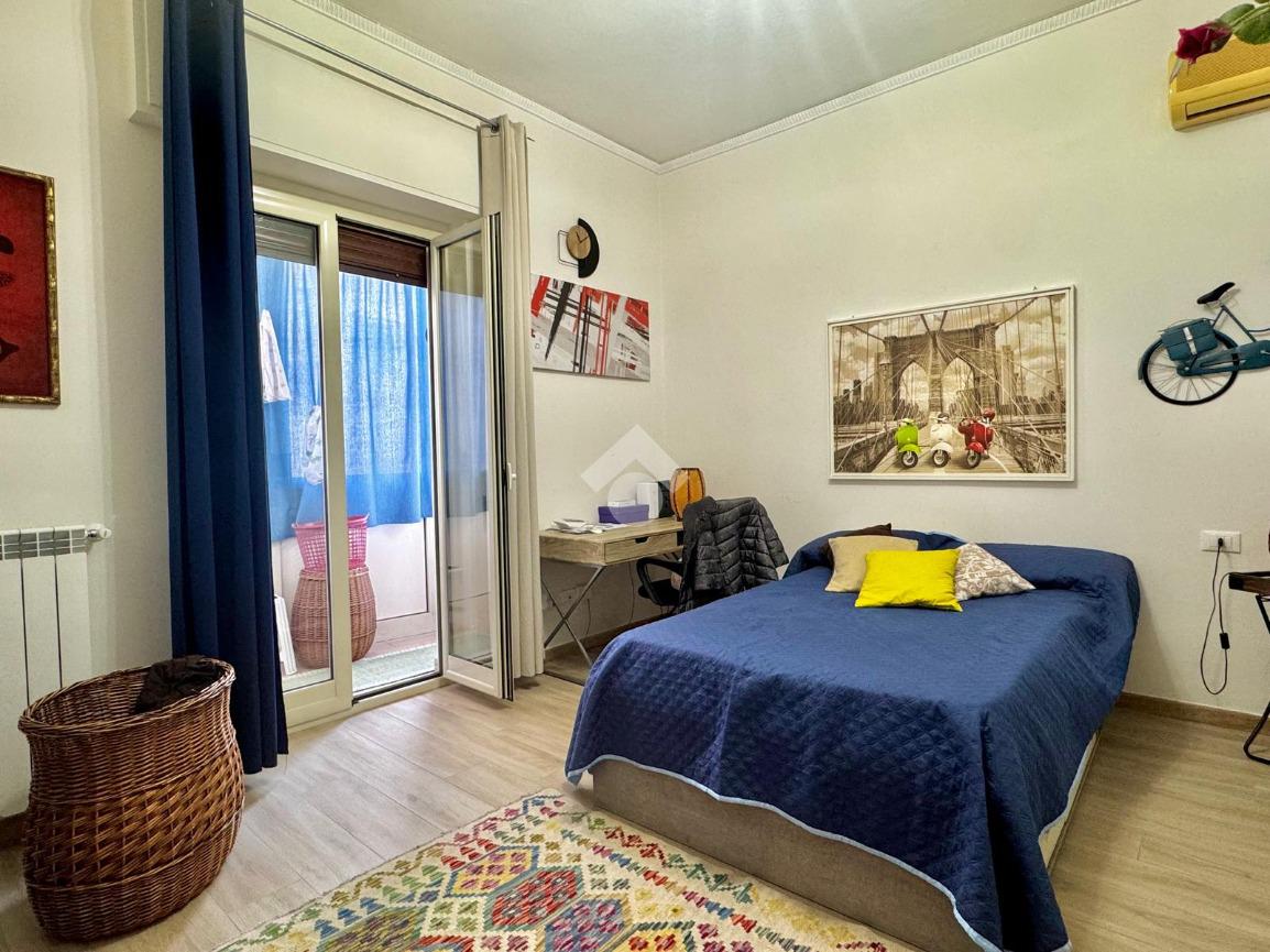 La zona notte comprende tre camere da letto, due delle quali con accesso al balcone; uno di questi è verandato ed è stato adibito a pratica zona lavanderia. Completano la distribuzione interna due ripostigli e doppi servizi entrambi finestrati, uno con doccia e l’altro con vasca.