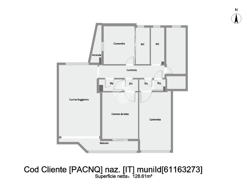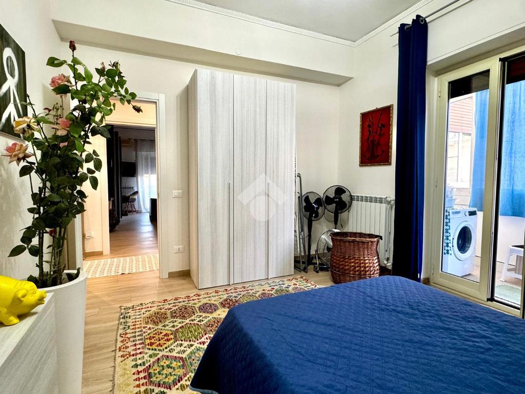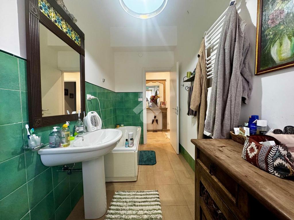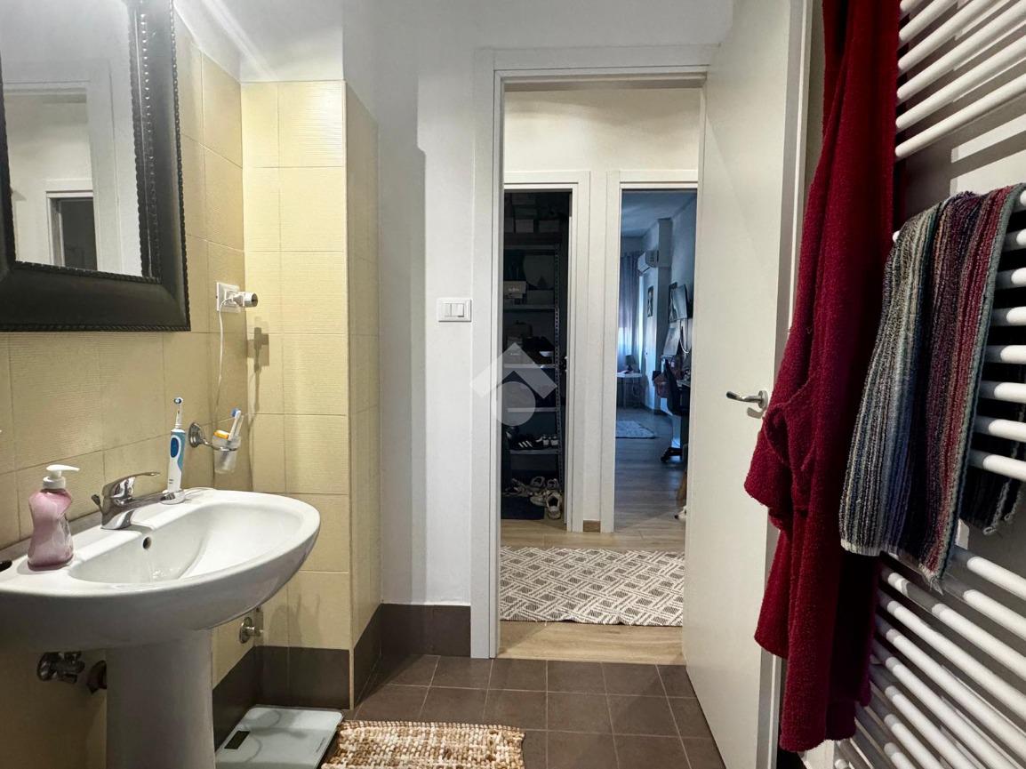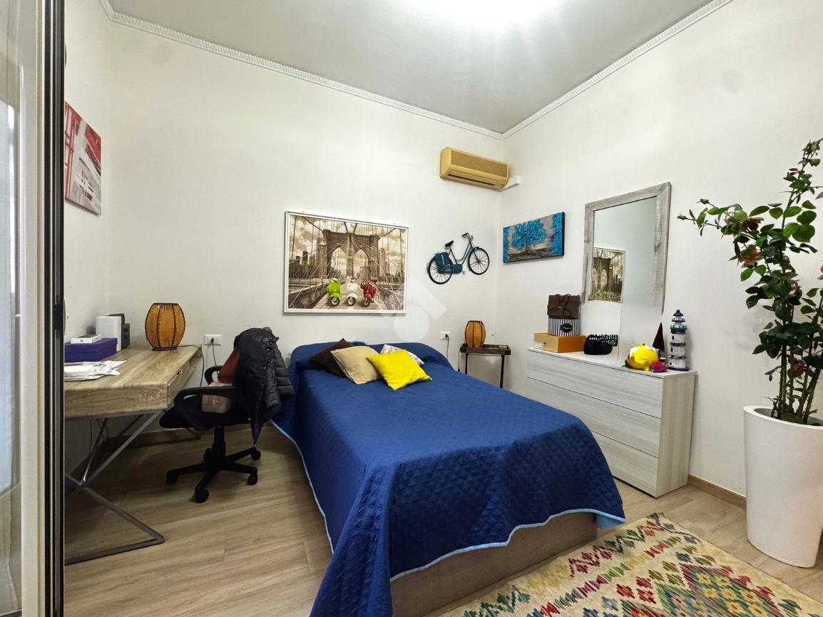 La zona notte comprende tre camere da letto, due delle quali con accesso al balcone; uno di questi è verandato ed è stato adibito a pratica zona lavanderia. Completano la distribuzione interna due ripostigli e doppi servizi entrambi finestrati, uno con doccia e l’altro con vasca.