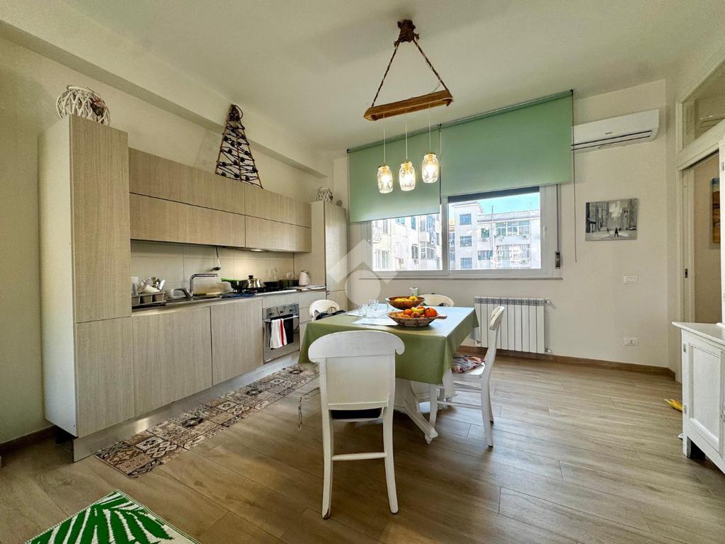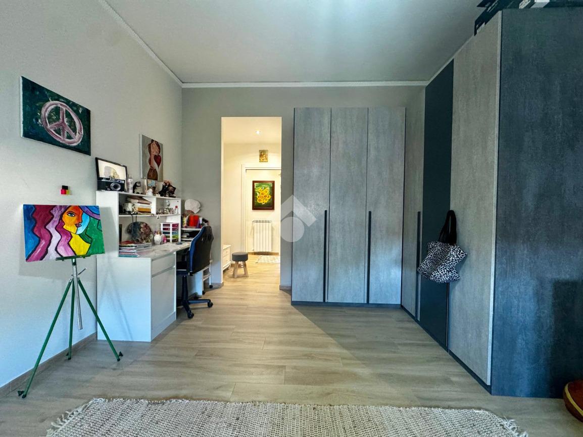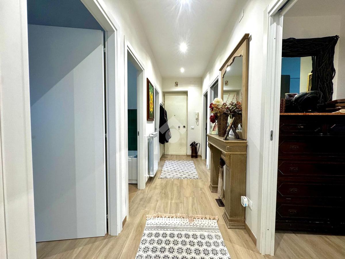 L’appartamento è stato ristrutturato quattro anni fa con materiali di qualità: infissi in alluminio con vetrocamera, pavimentazione in gres porcellanato effetto parquet, porte bianche a scrigno, oltre a quattro pompe di calore e riscaldamento autonomo, che garantiscono efficienza energetica e comfort in ogni stagione.